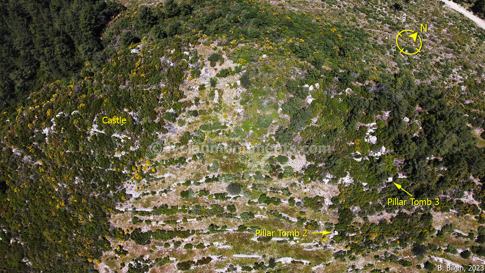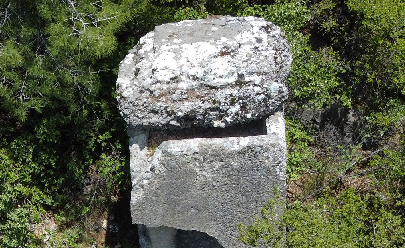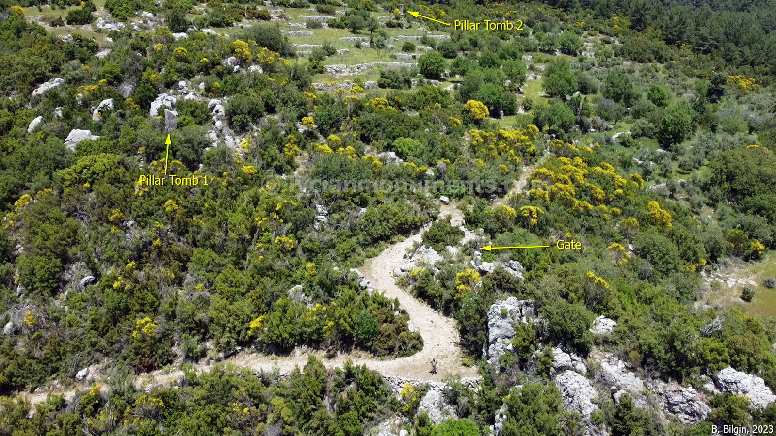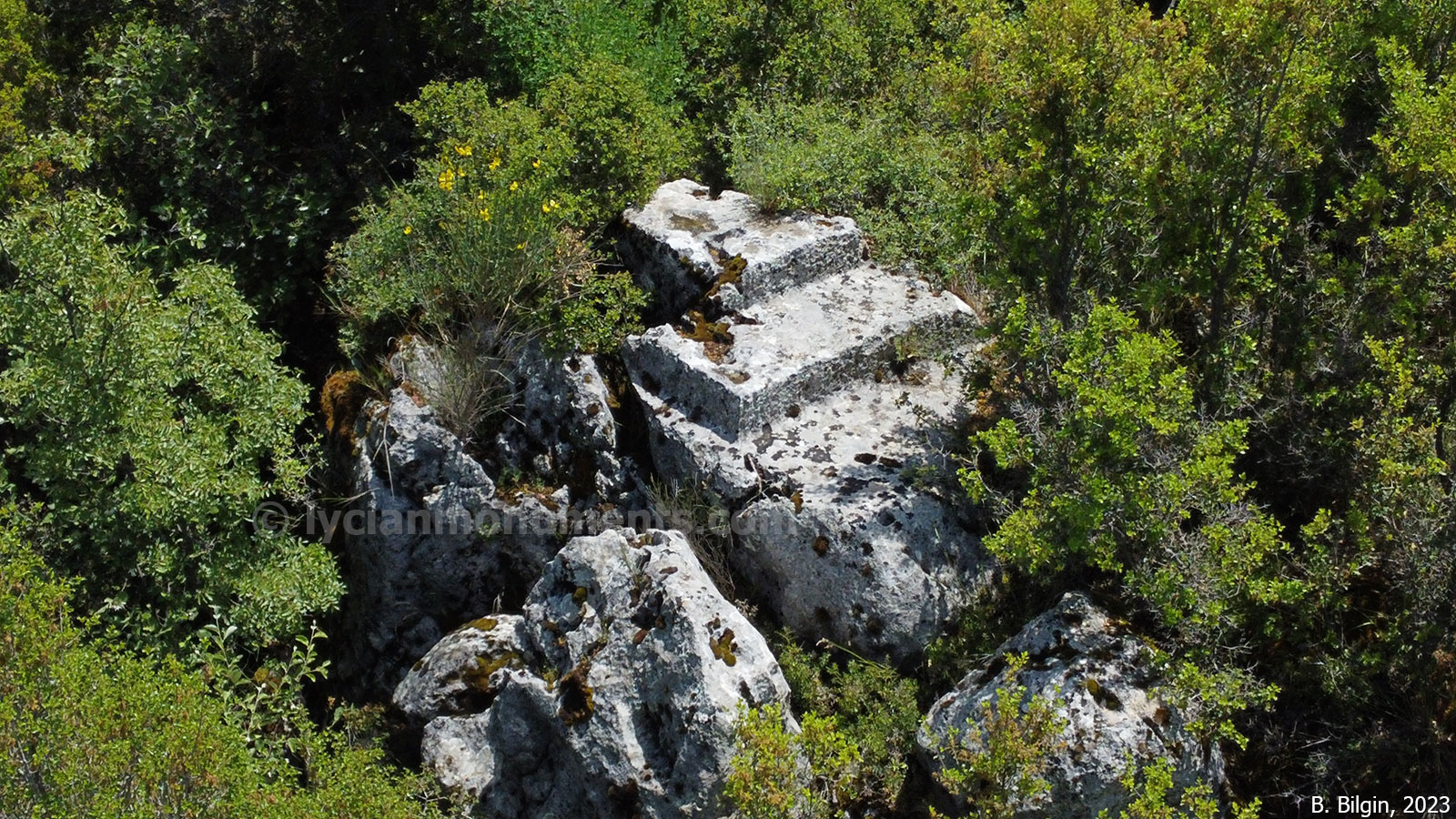 The city of Kerththi is located on the south-facing slope of a hill to the east of Hacıoğlan village, under which the Felen Stream passes. The location is called Asaraltı today. Borchhardt and his friends defined the city named Kerththi in Lycian on the Inscribed Monument in Xanthos as Asaraltı. It is a dynastic period settlement. The remains of the fortification walls show that the slope was divided into two parts as the upper and lower cities. On the top of the hill, apart from the castle and tombs, a square-shaped multi-roomed structure was identified, but its function could not be determined. On the Inscribed Monument in Xanthos, where the name of the city is mentioned, it is also mentioned that there was an altar dedicated to the Lycian goddess Pedrita in this city. Borchhardt says that the stepped base carved on a rock to the south of the west gate of the city may belong to this altar. Besides 5 pillar tombs (or cenotaphs according to Borchhardt), there are also a few rock tombs and sarcophagi in the settlement.
